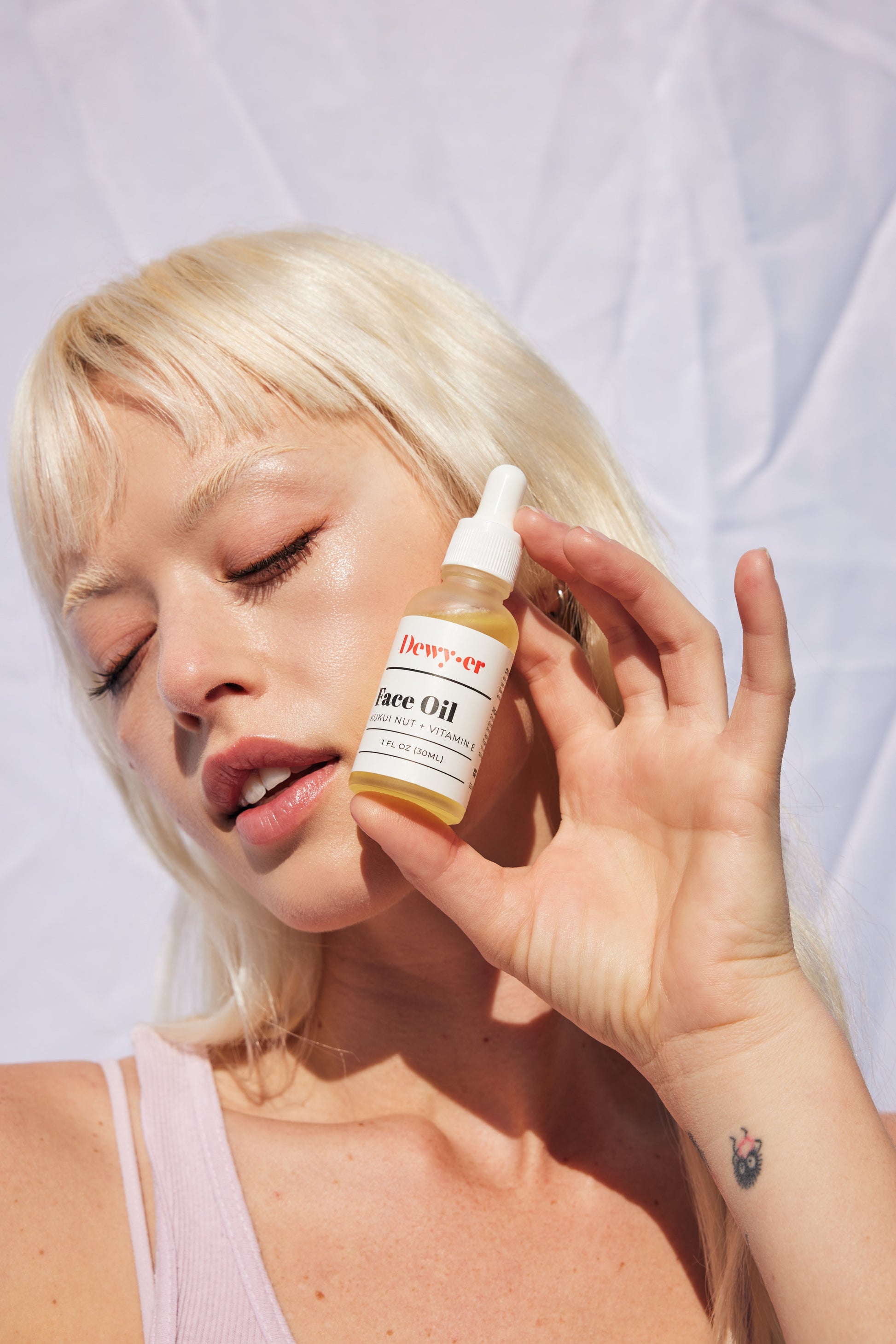 Dewyer Oil is packed with Vitamin E and Kukui Nut, two components that are necessary for cell growth, and blemish repair.